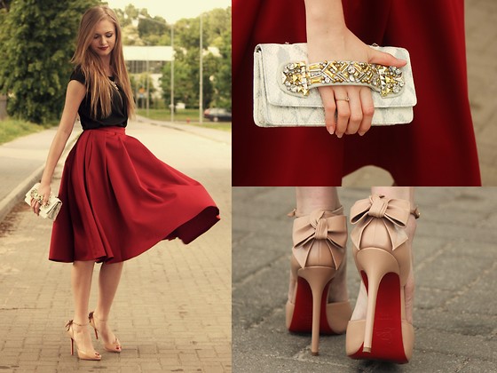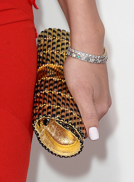 Red - fiery and defiant, attracts attention. Therefore, in order not to overload the image, it is better to choose colors of the clutches that are calm - black, blue, white. Other colors are possible, but for a color clutch you need to choose another accessory that matches its color.
