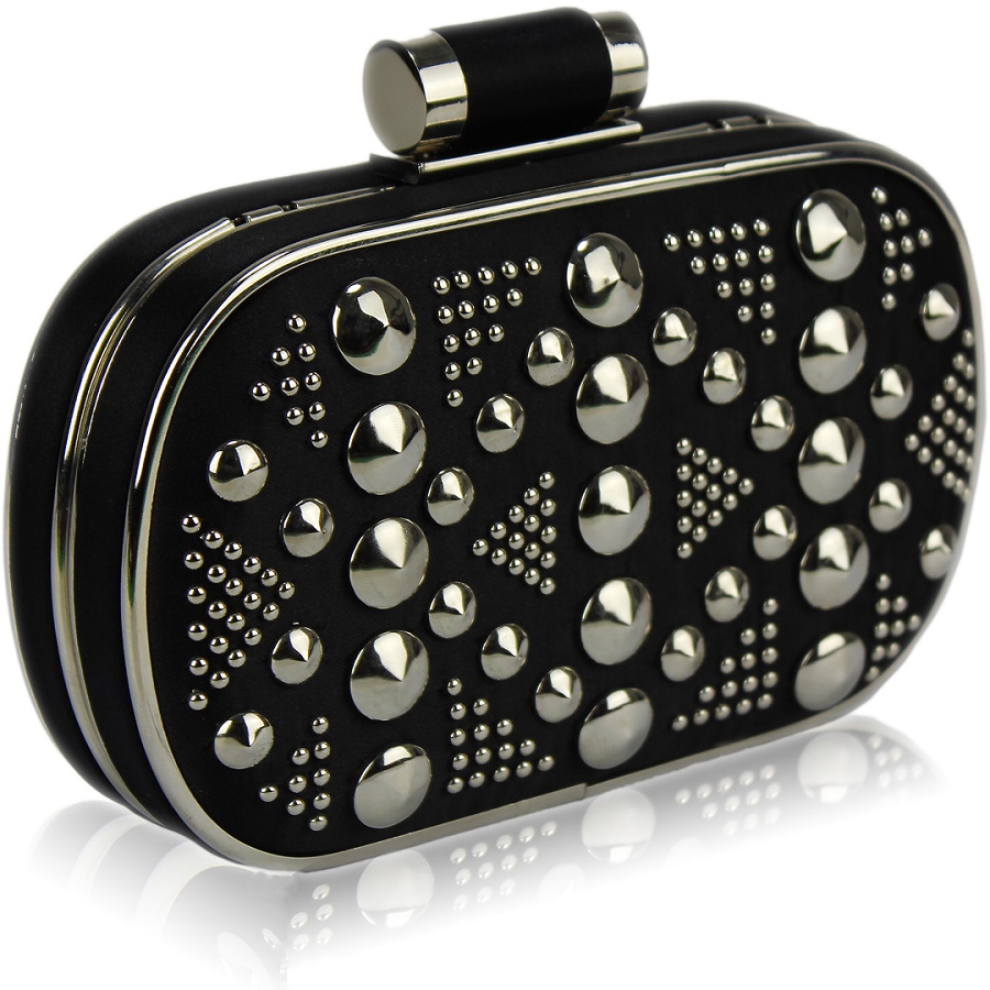 Universal black dress looks great with a variety of clutch options. They look beautiful with a black version of clutches with decorative trim, unusual shape, metal prints, chains, rhinestones.