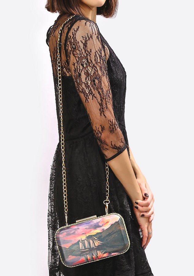 - evening dresses suggest feminine and vibrant clutches, with decoration and decor.