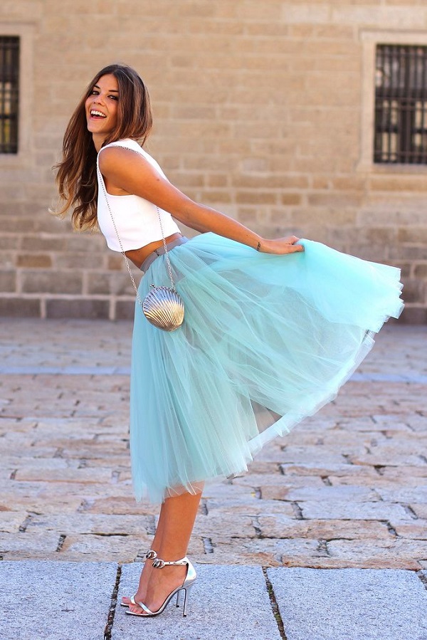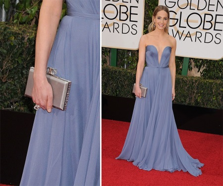 Blue dress - elegance and charm. All its shades are popular for dresses today. To continue the restraint of the image pick up a black clutch. But if you need to add charm, then white, silver and shiny gray variants are perfect.