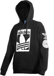 The sweatshirts of this line are presented in the form of original sweatshirts with decorative stripes, characteristic of this brand, on the sleeves. A distinctive feature is a three-dimensional geometric figure with the name of this collection, made in the form of an emblem on the left side of the chest.