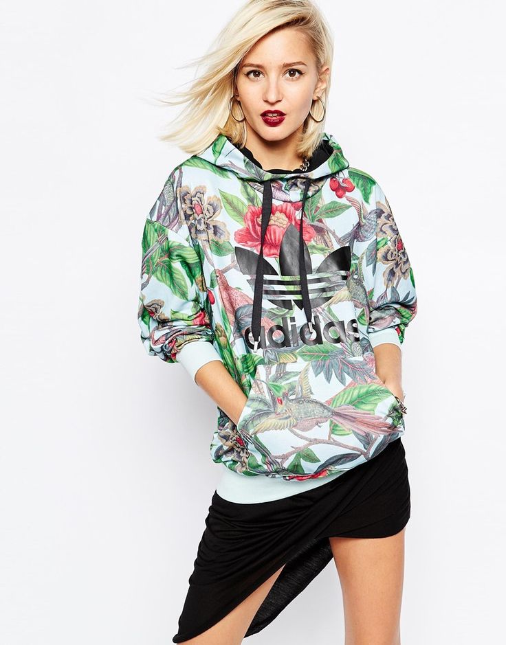 The kangaroo sweater, also known as hoodie, is the classic version of a full-length women's sweatshirt, without any fasteners.