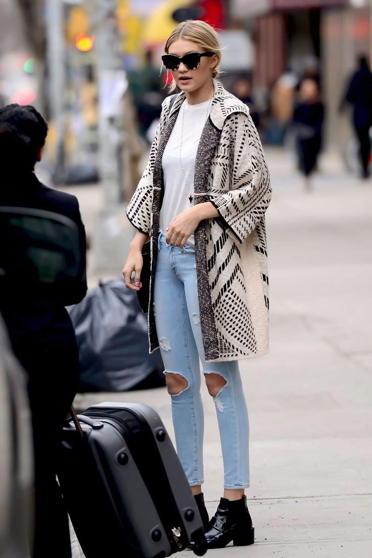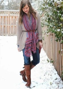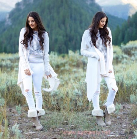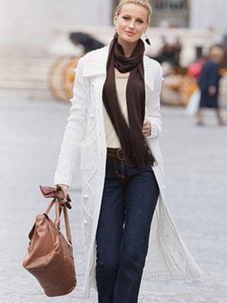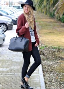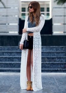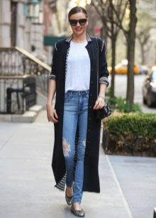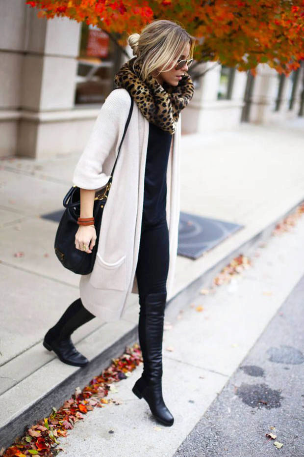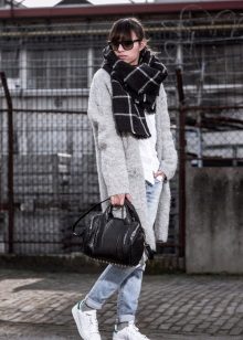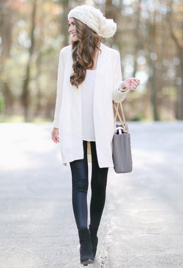 The second place is occupied by an elongated knit cardigan. Looks perfect with skinny jeans, tops, short dresses.