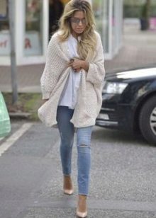 In other words, it is a cape. It is convenient and practical. Perfectly in harmony with pants and jeans.Most of these cardigans are made of dense knitwear, having a large bulk knitting.