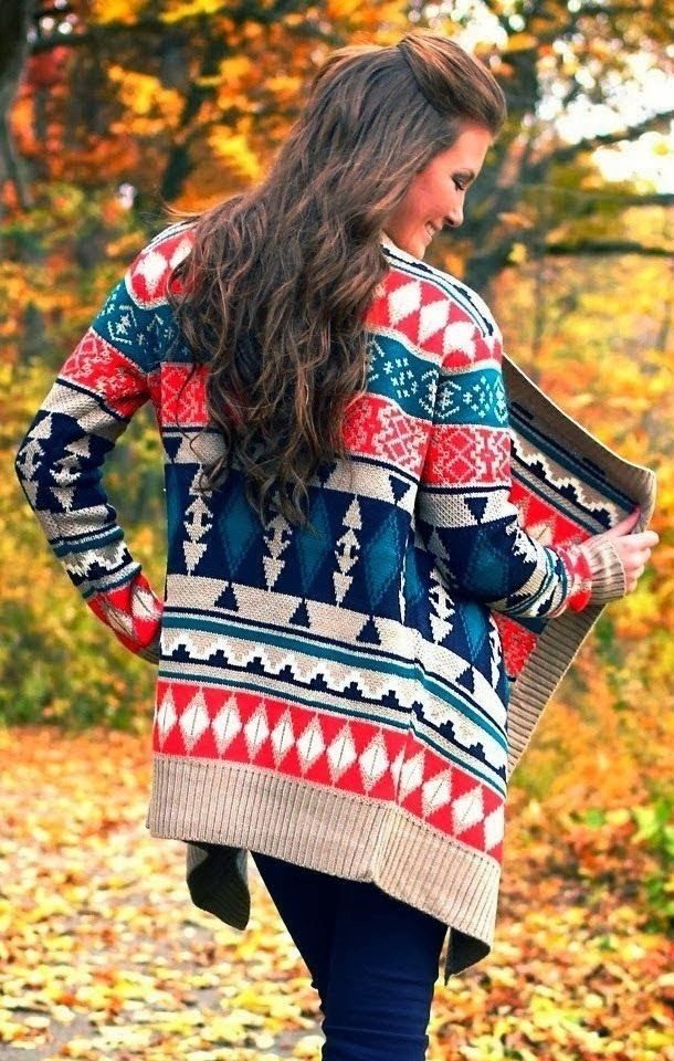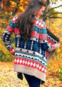 Printed cardigans are no less popular among women. Stripes, cells, graphic patterns, ethnic ornaments, animalistic prints are always in trend.