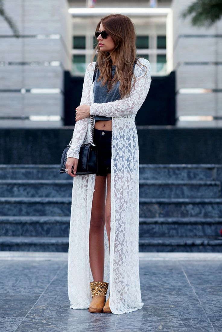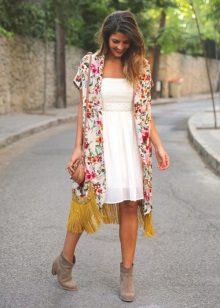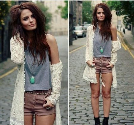 Set number 2 "Summer". Denim short shorts or lace dress, top and cardigan, silk or chiffon. This outfit is ideal for evening walks.