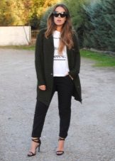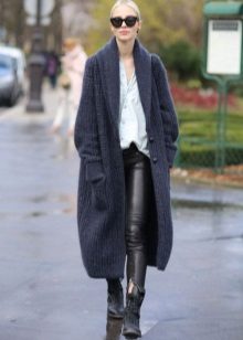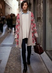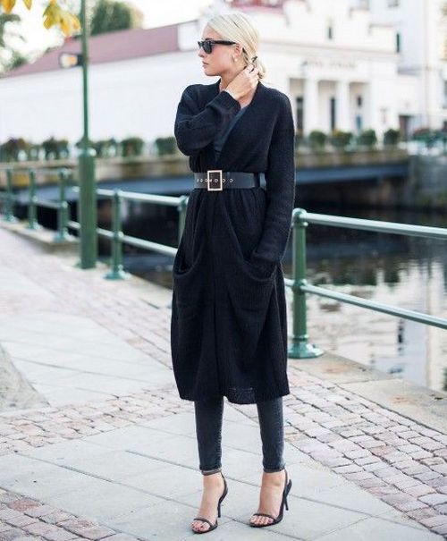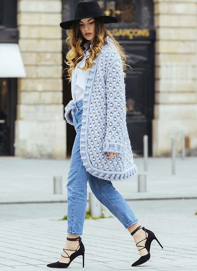 As for the length, then this season is particularly relevant elongated sweaters, resembling knitted coats. Such sweaters can be worn with a belt or freely.