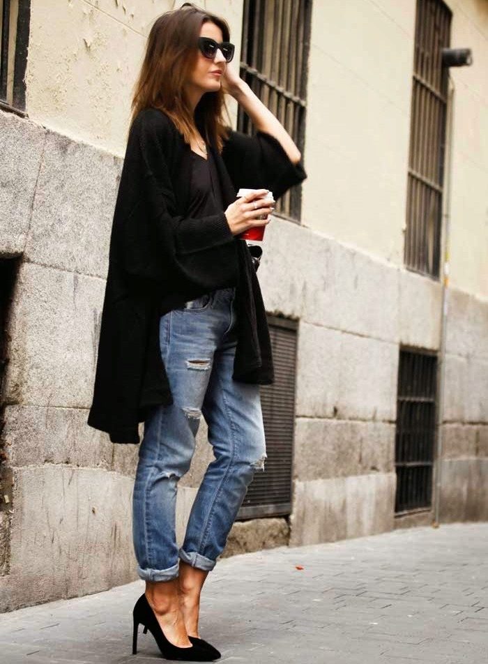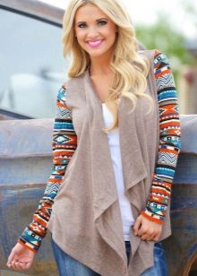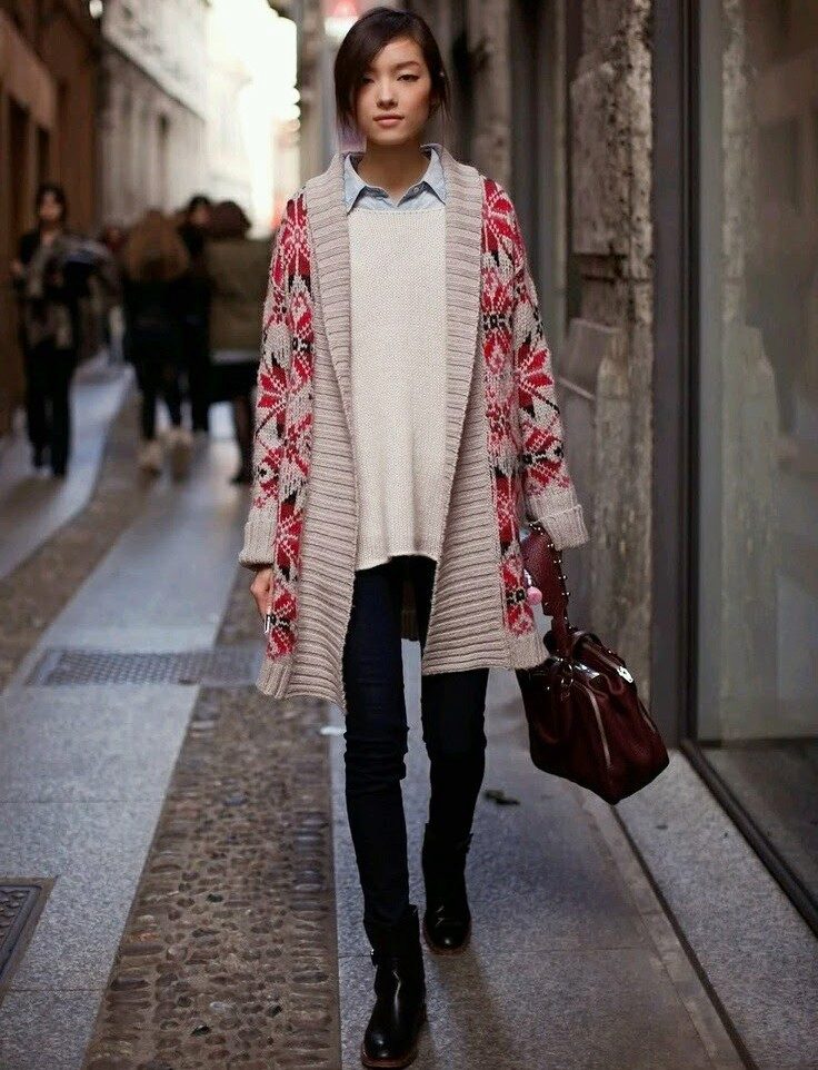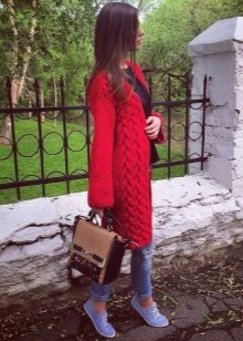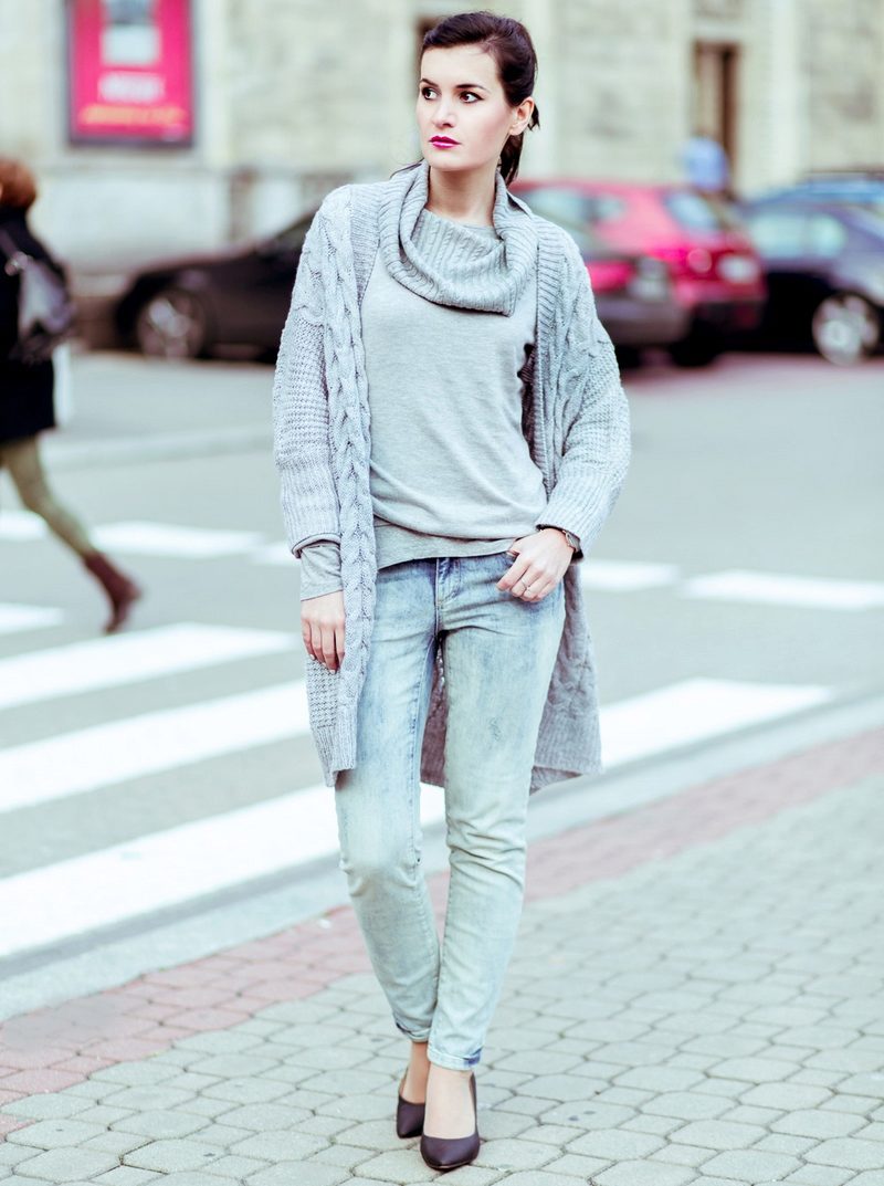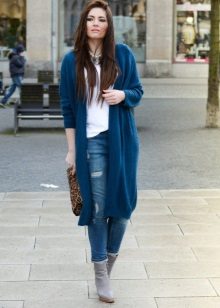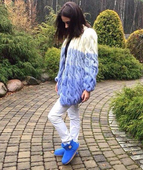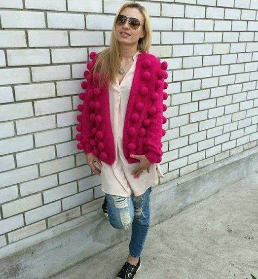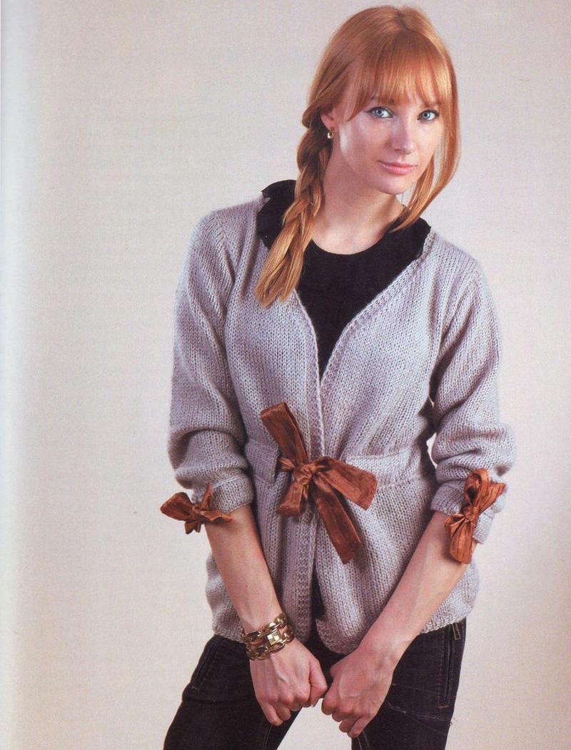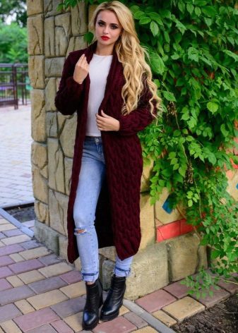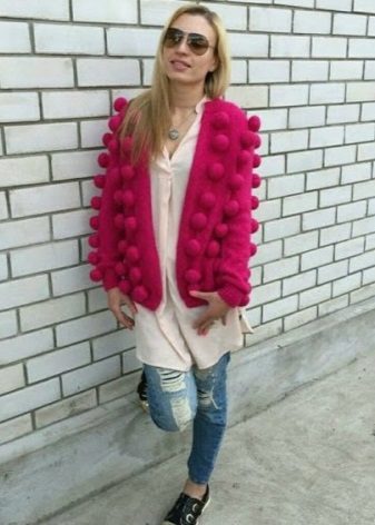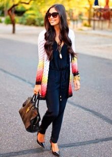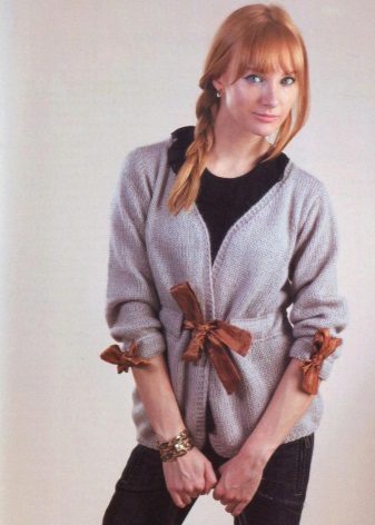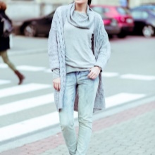 If the jacket will be used as a supplement to the dress, then lighter, loose knitting options and thin wool can be selected for it. Sweatshirts of light, pastel shades will harmonize perfectly with jeans, turtlenecks, blouses, skirts, made in restrained, dark colors.