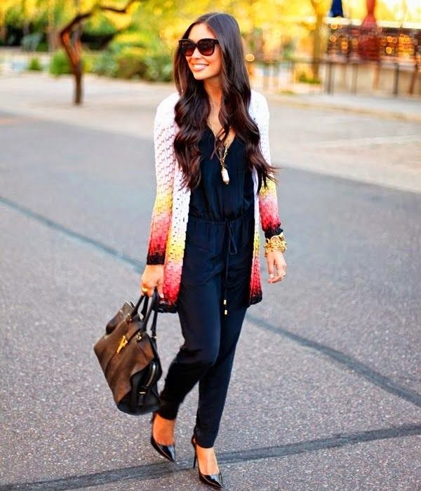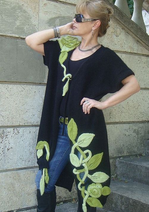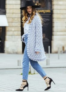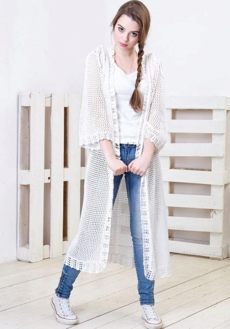 Openwork jacket always looks very elegant and feminine. Depending on the knit density and the pattern, this jacket can be worn on its own or be an elegant addition to an elegant dress, sundress, a set of a top with a skirt, etc. Long jacket or openwork cardigan will be a great addition to a business suit.