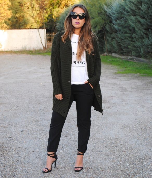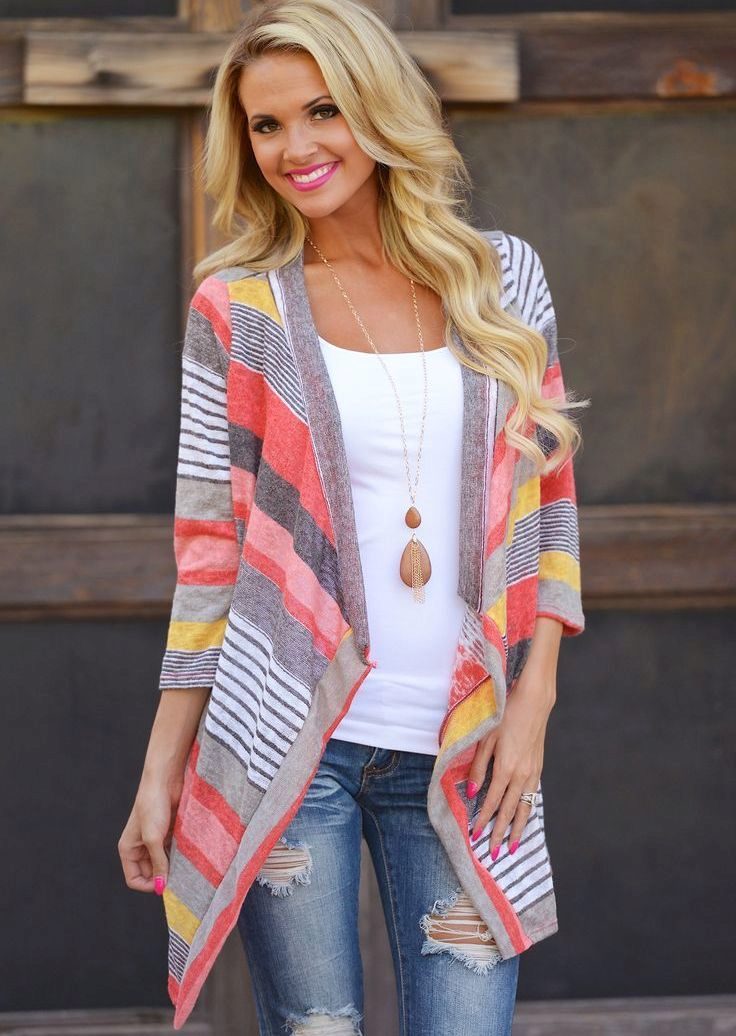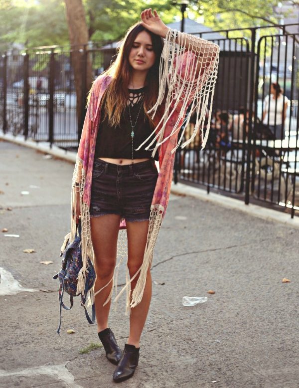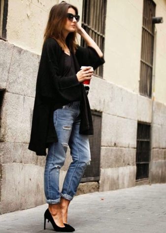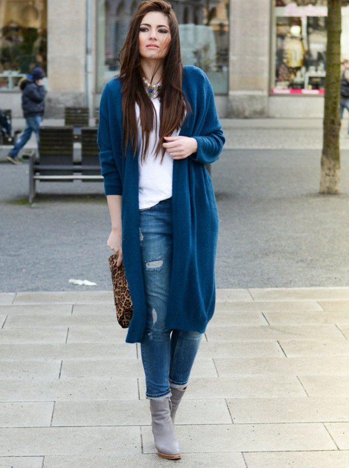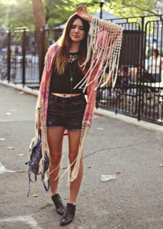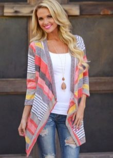 An interesting combination is a set of summer blouse, denim shorts and a long knitted sweater with a three-quarter sleeve. A great option for every day.