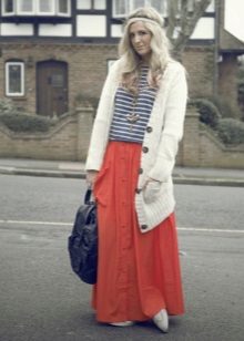One of the most relevant combinations of this season is a set of knitted sweaters and a long skirt. This may be an evening dress, and a set for everyday life.