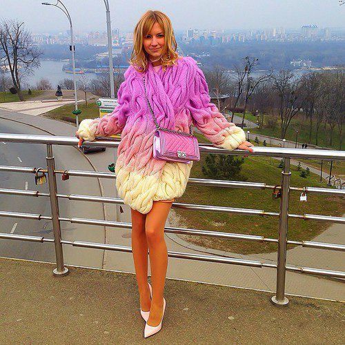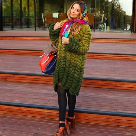 The length of knitted sweaters can be different - in the fashion and shortened models of sports type, and long, flared jackets, resembling a coat.