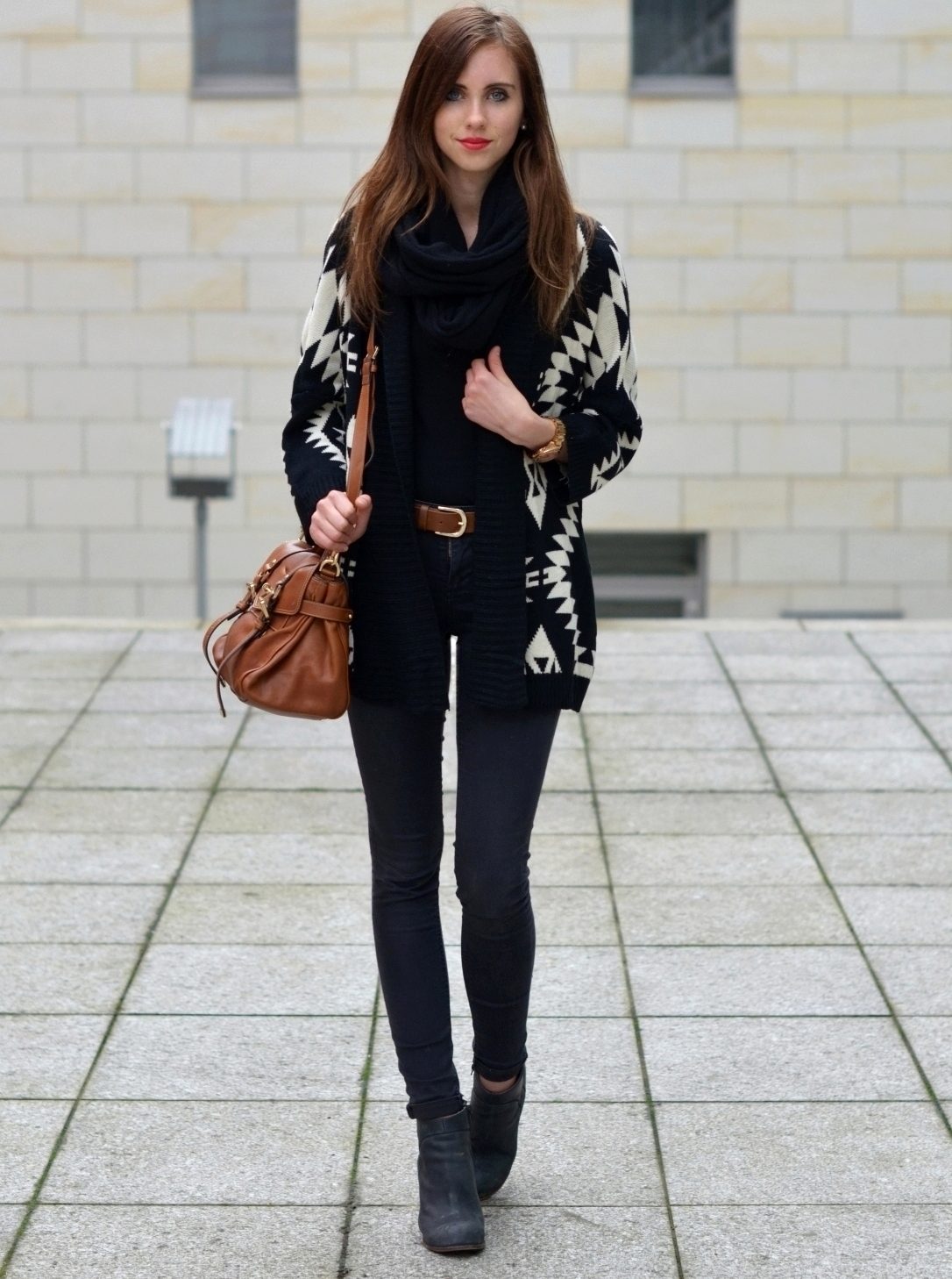 Particularly interesting are such ornaments on models made of Angora yarn, mohair or fine wool. Such sweaters themselves look very elegant, so it is best to combine them with more restrained things: jeans, classic monochrome trousers, a strict skirt.