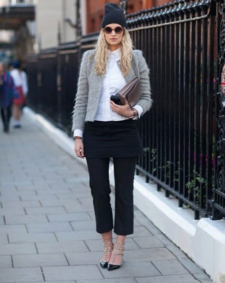 The combination of contrasting in style, texture and color of things allows you to create the most daring and extravagant images that are relevant in the new season. For example, the classic cut strict sweater perfectly emphasize the light, elegant cut flying chiffon dress. Or vice versa - a free, volumetric sweater will look great against the background of classic trousers.