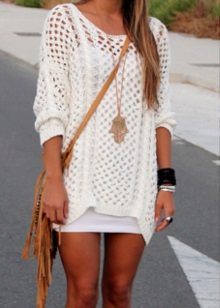 One of the most popular knitted sweaters for today is a tunic. She has the most simple cut and is worn over a plain T-shirt or T-shirt.
