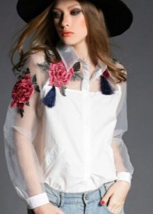 Blouse can be worn as a separate item of clothing or complement the finished set. Monochrome blouse is perfect for creating a business style. A model with a bright and unusual print will complement the outfit of a monochrome T-shirt and ripped jeans.