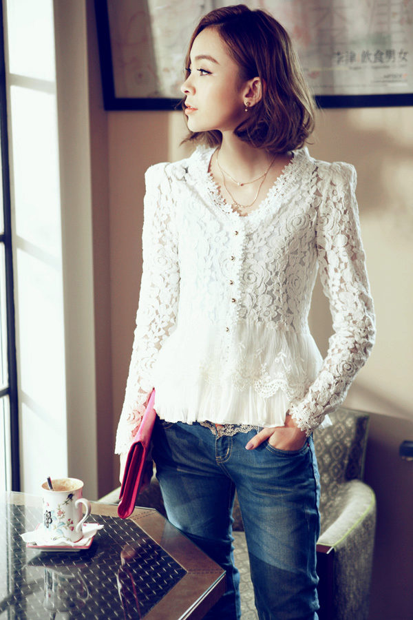 Blouse, made in the technique of knitting loin, will surely attract the attention of others. Thin, weightless, airy lace is a wonderful material for creating a summer elegant blouse. Such blouses have a laconic cut, because the main attention is riveted to the picture. Among the most popular patterns are floral designs, butterflies, geometry, etc.