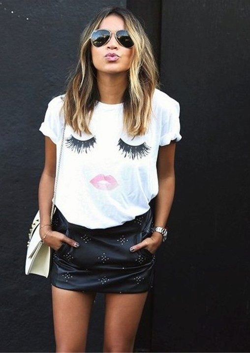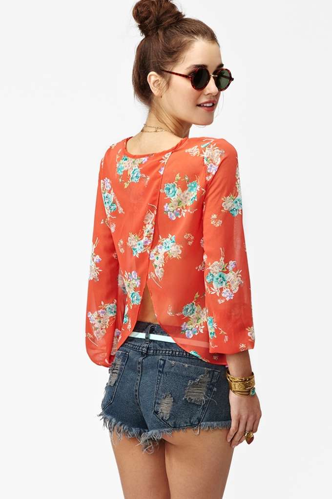 Light blouse or mesh is perfect for denim shorts or skirt.