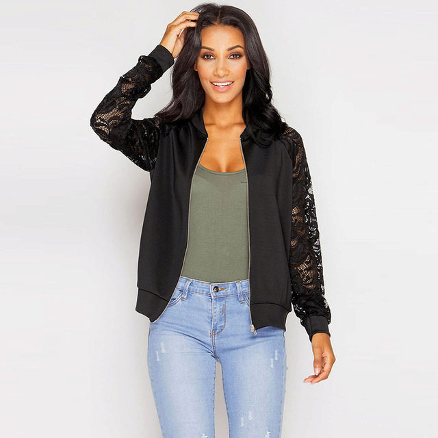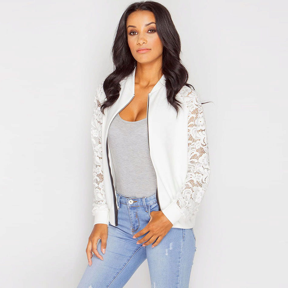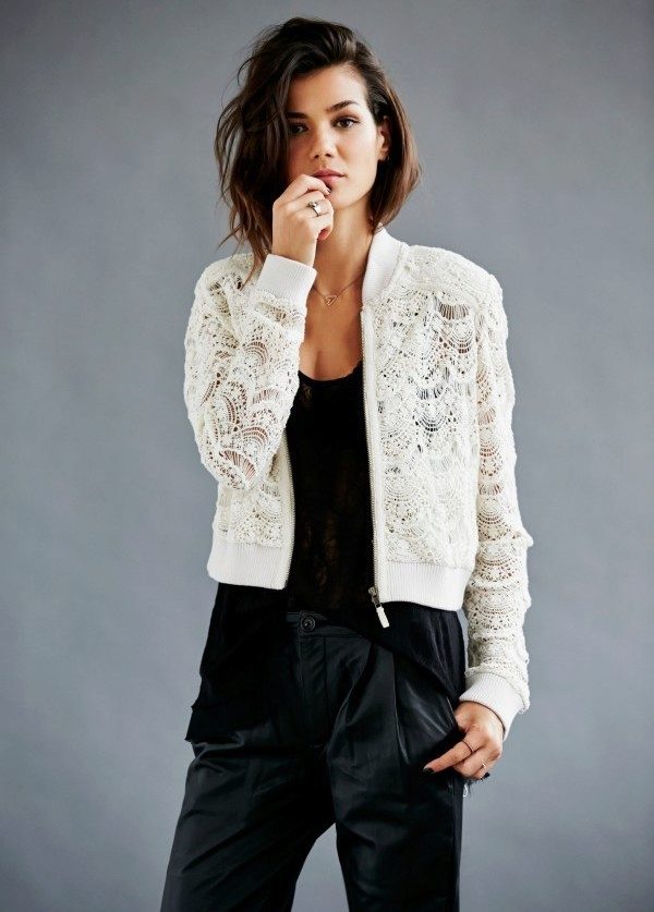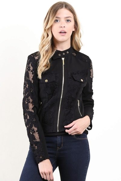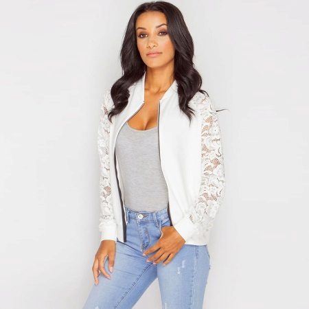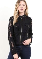 A jacket with lace sleeves in combination with jeans is a great option for every day.