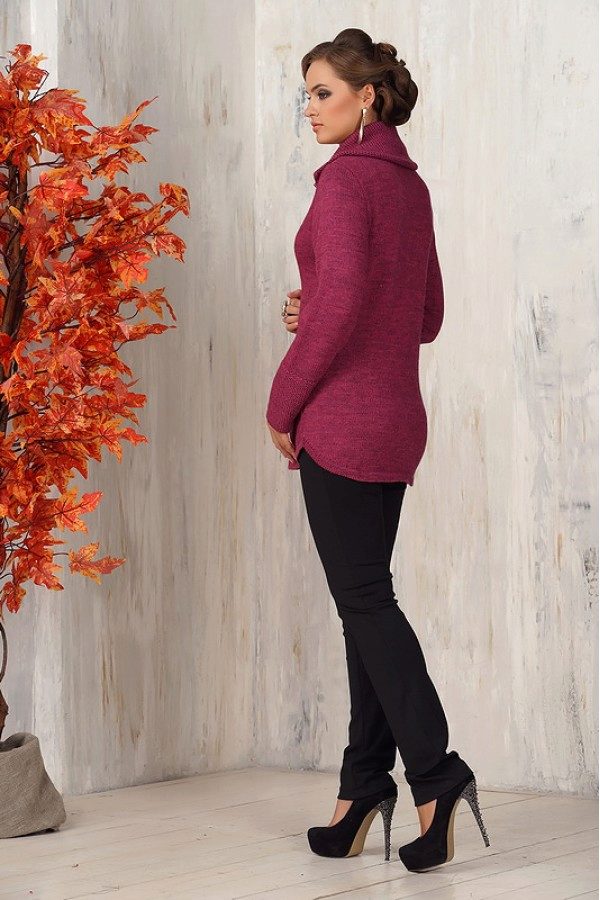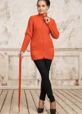 An elongated fitted sweater with a thick knit is perfectly combined not only with jeans or trousers, but also with a skirt.