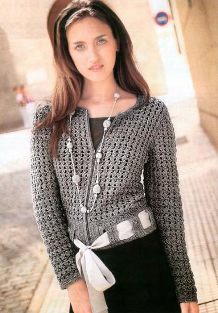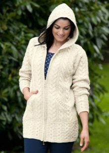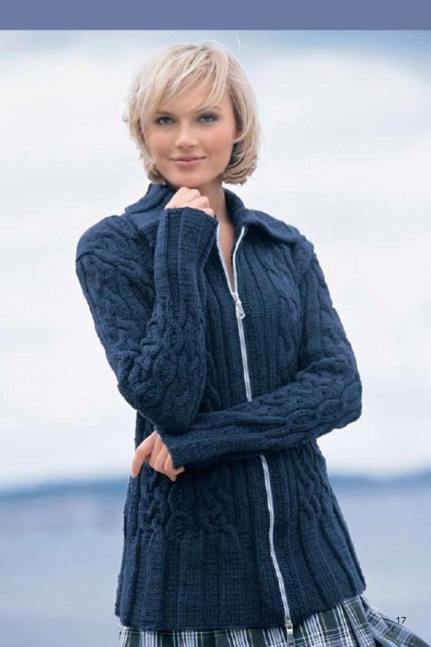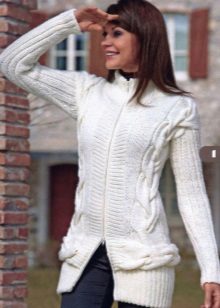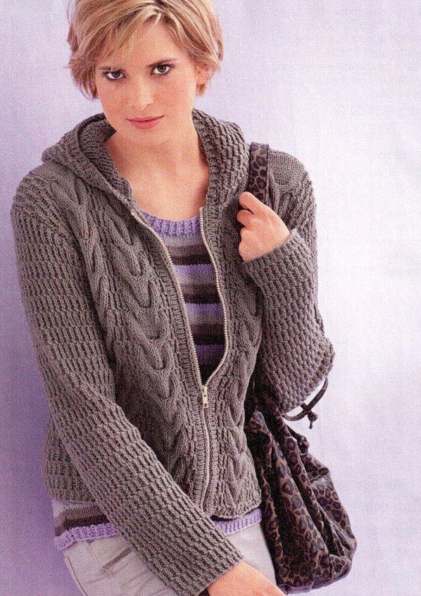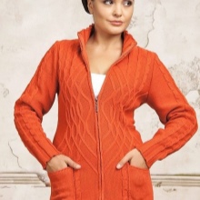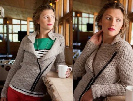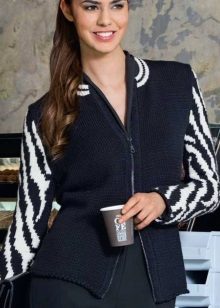 The classic sports model of a jacket with a zipper provides for a hood or stand-up collar. The sleeves and bottom of the jacket are additionally finished with knitted or crocheted cuffs.