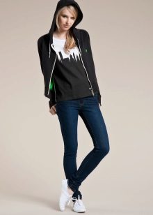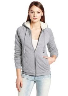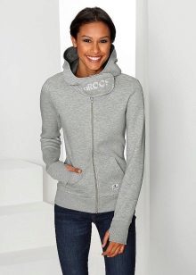 Jackets of classic colors - black and white are always relevant. In this series can be attributed gray jackets. This is the most common color option, especially for sports sweatshirts and sweatshirts. Such jackets are often combined with decor or accessories in a contrasting color - white, black, pink.