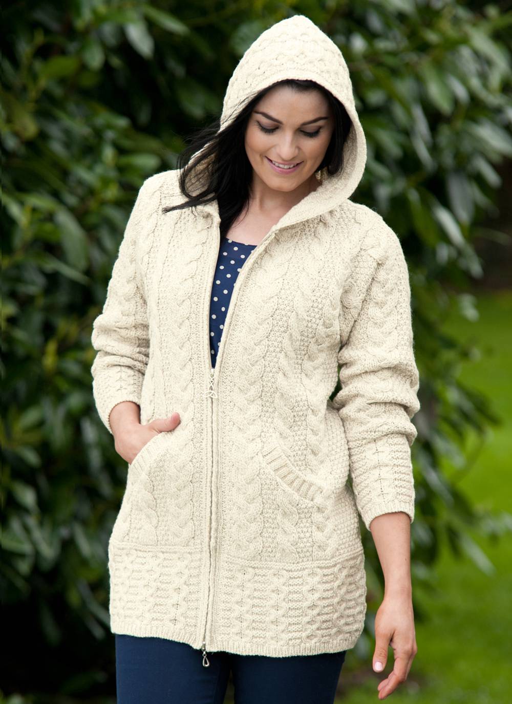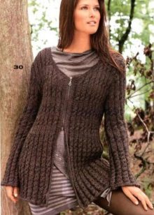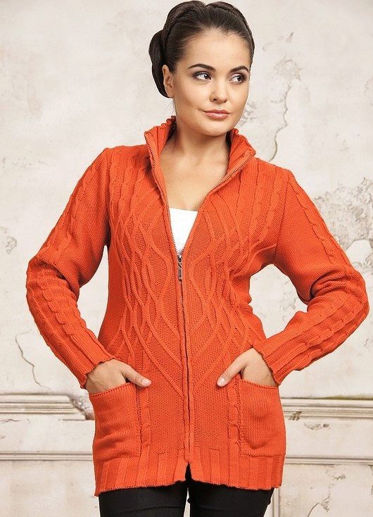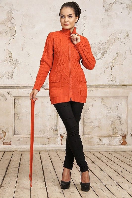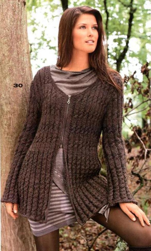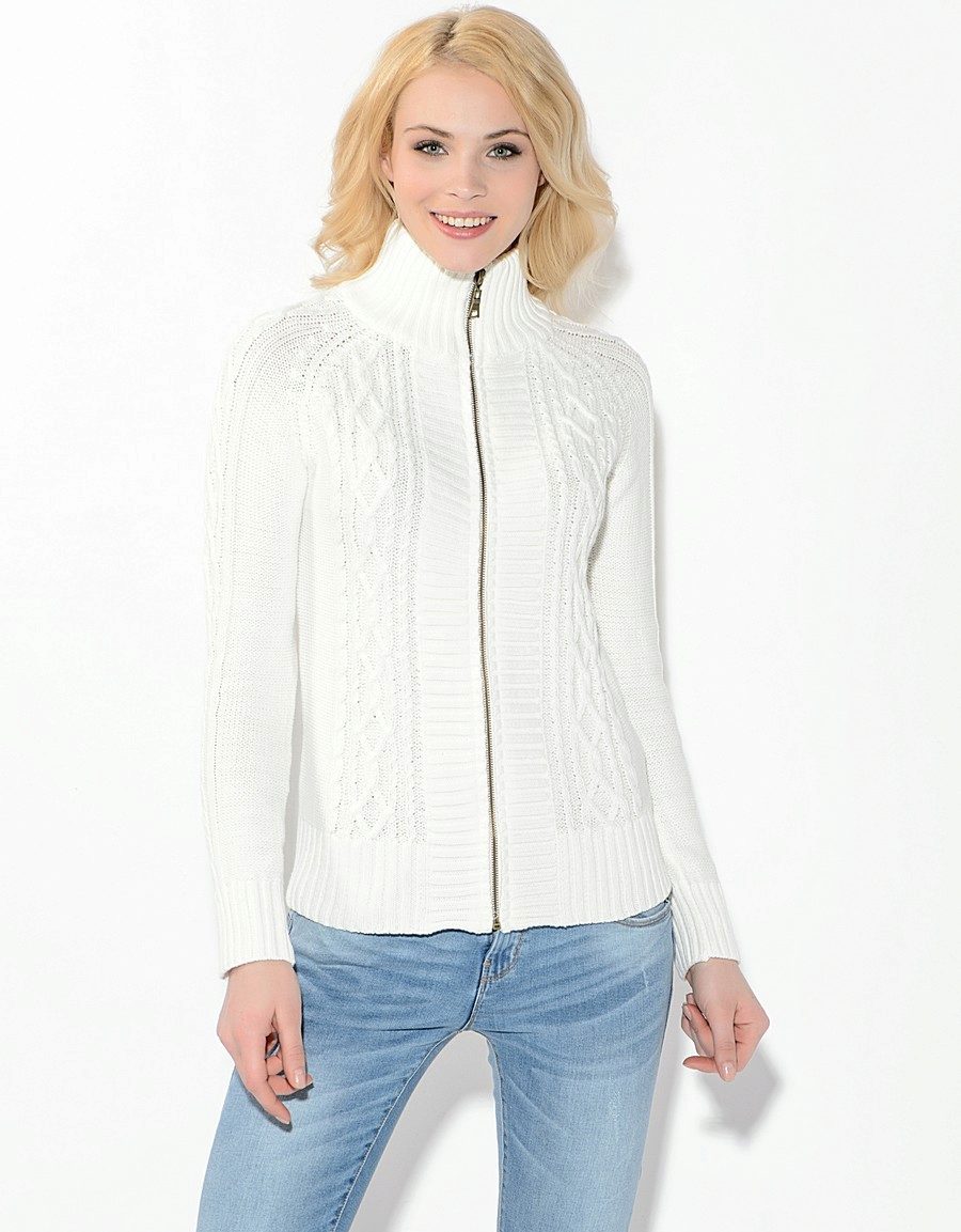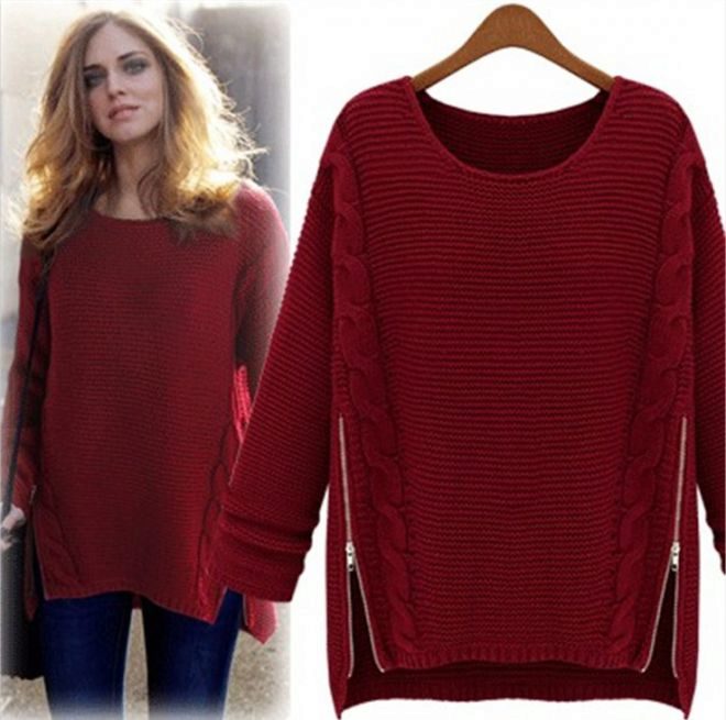 Long zip sweaters look like a knitted coat. They are very stylish and combined with pants and skirts.