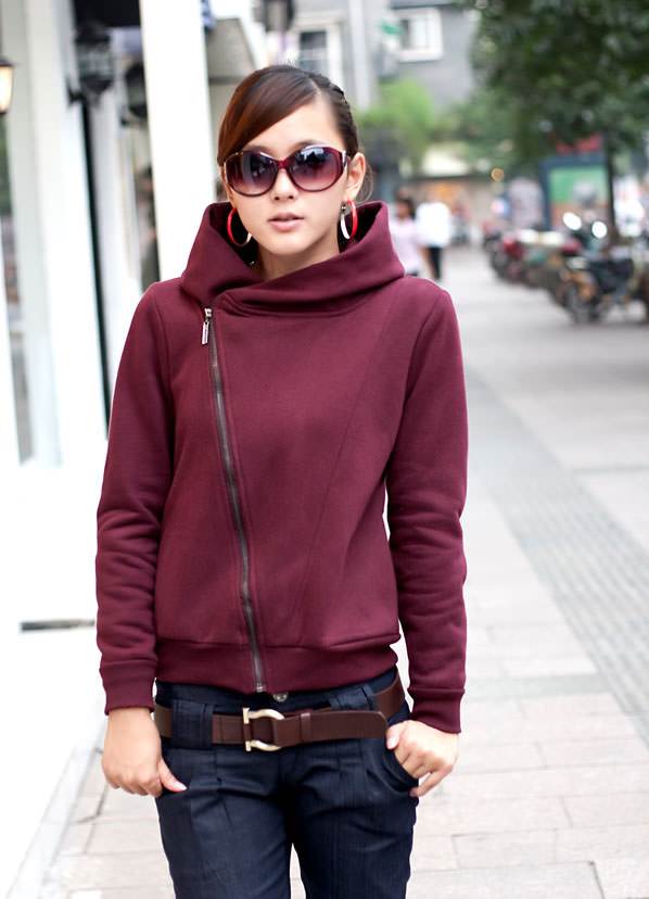 The most common model is a jacket with a zipper, located in front. Because it is convenient and very practical.