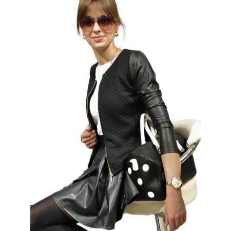 One of the most stylish and creative models is a jacket made of quilted jersey or other material with sleeves made of leather. This jacket looks unusually expensive and stylish. Sleeves can be made to match the sweater or from contrasting skin color.