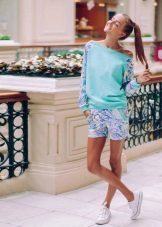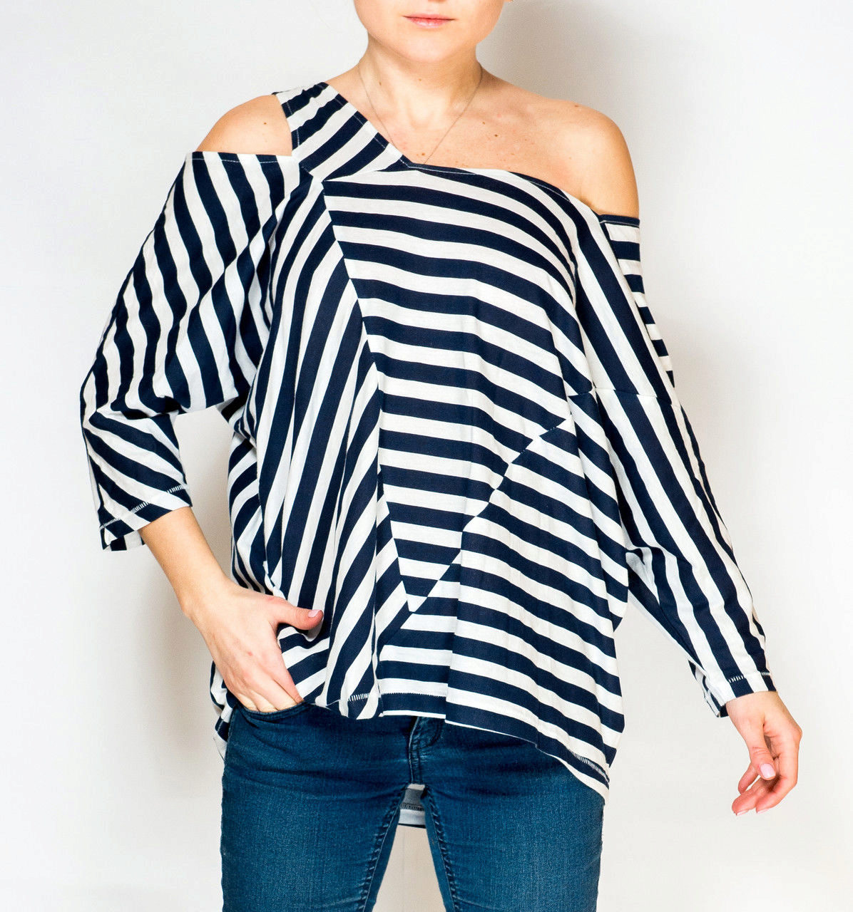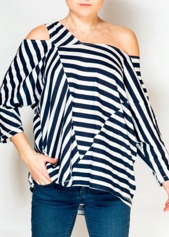 Striped sweatshirt remains in trend. It can be both with two sleeves, and with one sleeve.