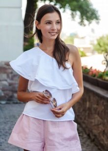 To catch a touch of charm, to give femininity to the image and to make your silhouette seductive, different models of blouses on one shoulder will help.