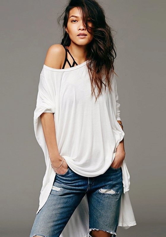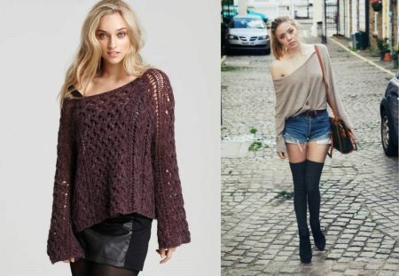 A loose sweater can be knitted or made from knitwear. It is better to wear such a model with a t-shirt or top. Add a long skirt to the image to make your set light and elegant.