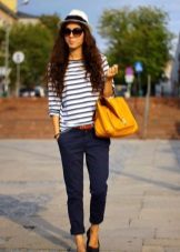 Shorts of medium length with a classic cut and arrows can be combined only with tight-fitting sweaters made of thin fabric. If you prefer a shortened model, you should choose an elegant top or tank top.