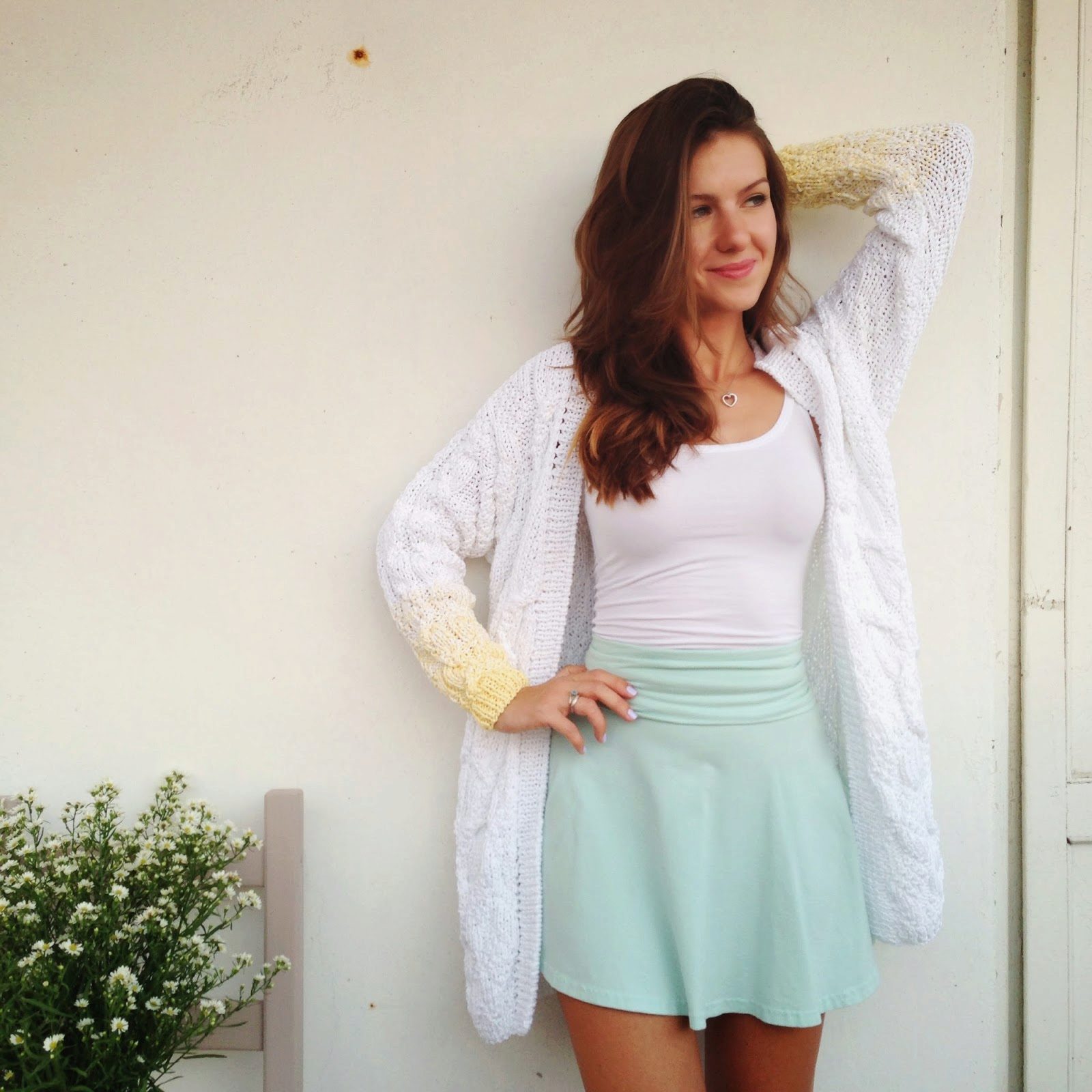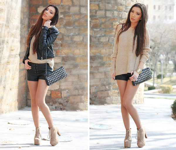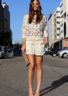 In addition to the two options presented above, long-sleeve sweater can be combined with shorts.