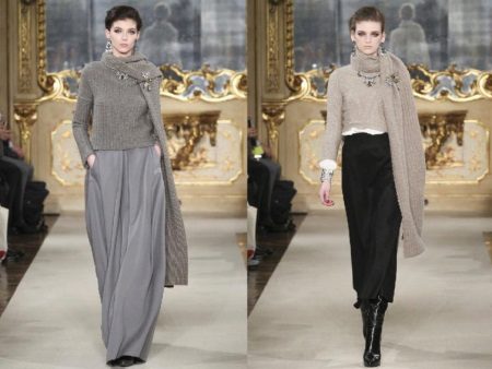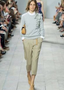 If you chose a tight-fitting model of a sweater, then you can choose pants with a free or wide cut, so the image will be harmonious and light.