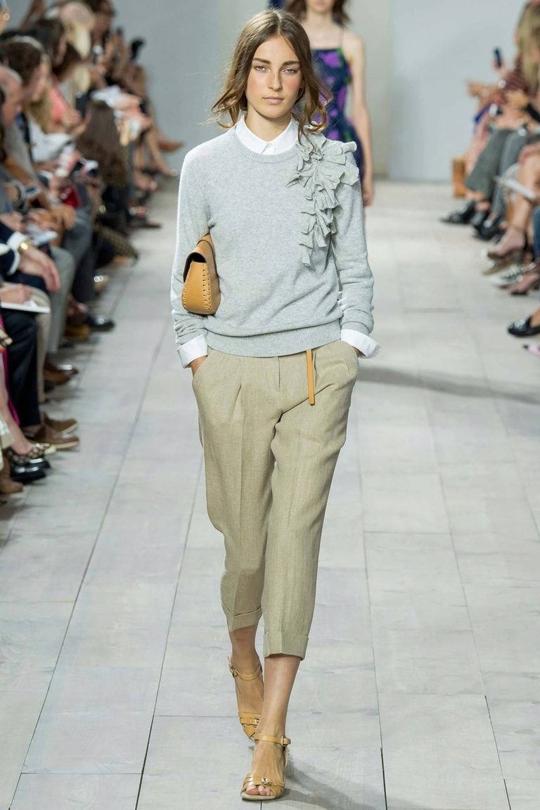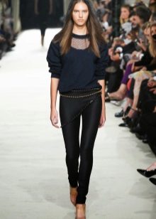 When combining a long sleeve sweater with any model of trousers, you should consider the style of the product itself. If you prefer a warm knitted sweater made of thick woolen fabric, you should choose a tapered classic model of trousers or straight-cut trousers so as not to create excessive volumes.
