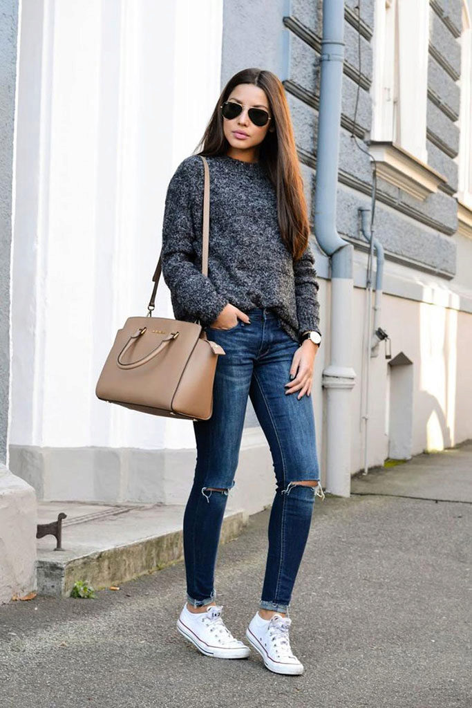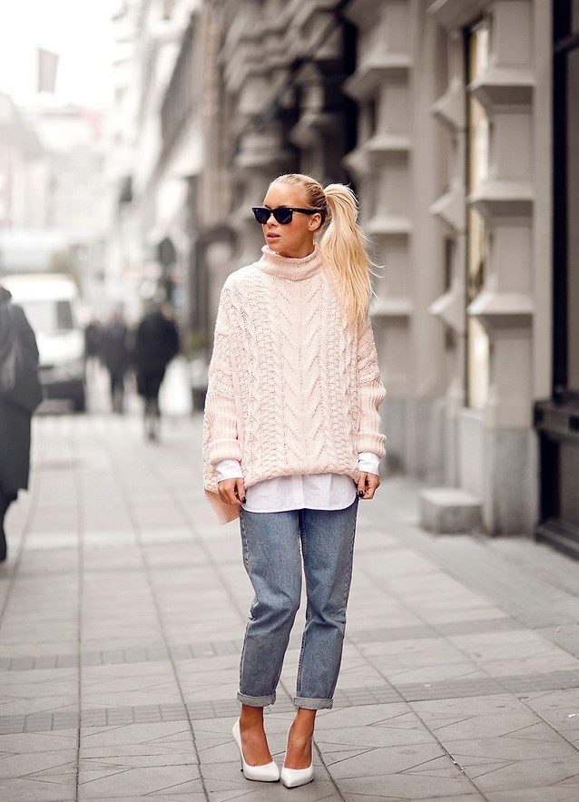 Consider the most popular combination of sweaters with long sleeves with other items of clothing in order to easily find the right set if necessary.