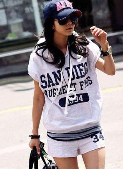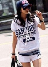 - Denim shorts, T-shirt and sports shoes. This is an option for a cool summer evening, which is suitable only for slender girls.