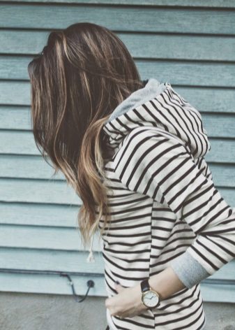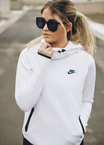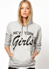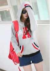 Sweatshirt hoodie. This model is represented by a loose cut jacket with long sleeves. Most often it is equipped with a cord, which can be tightened hood. On many sweaters of this style, also called sash hoodies, there are patch pockets. They are put on for a walk, a picnic or a jog.