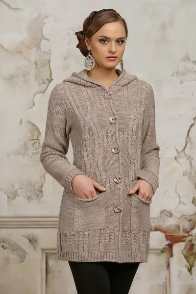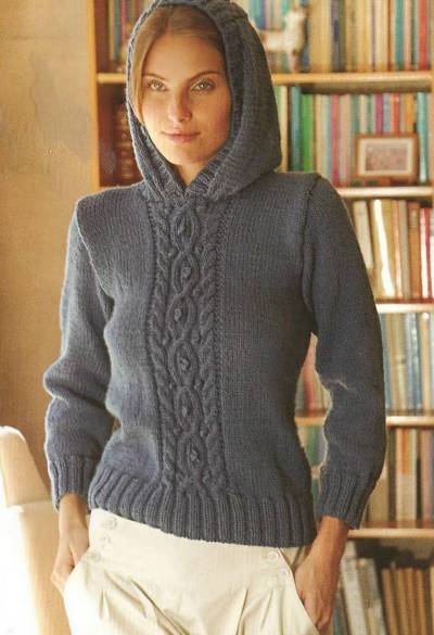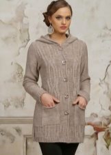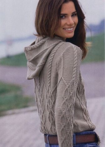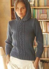 Most sweaters with a hood are presented in a restrained color and are distinguished by a minimum of finish.