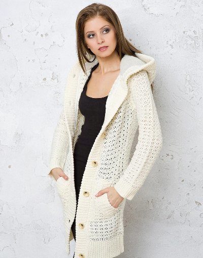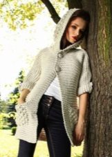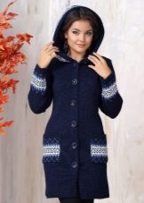 The addition of any knitted sweater to the hood makes the product more interesting and attractive. As a rule, for the manufacture of such clothing using threads containing at least 50-60% wool. On such jackets are often found openwork inserts or braids.