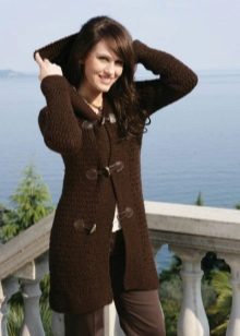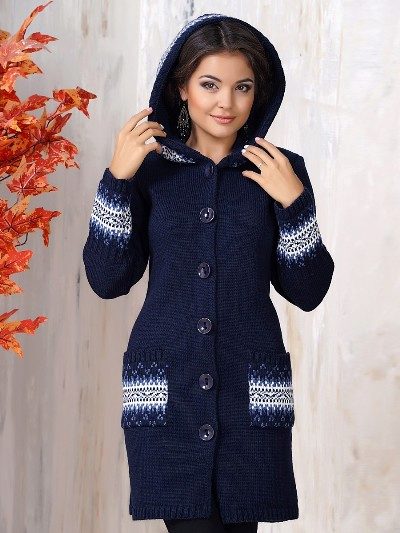 Often knitted sweaters with a hood are fastened with buttons, but there are also models with hooks or “snake”.