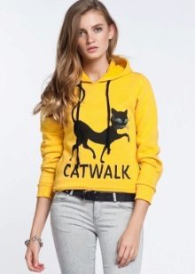 - Sweatshirts with a hood can be called universal clothing, as they can be worn at any age and with any type of figure.