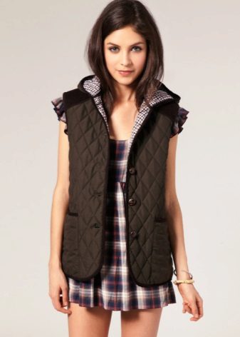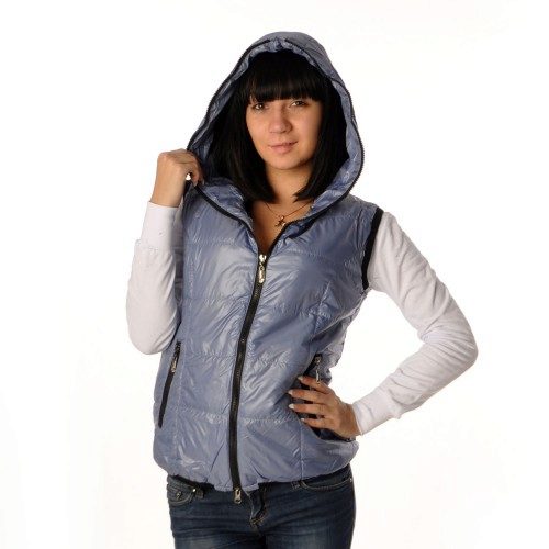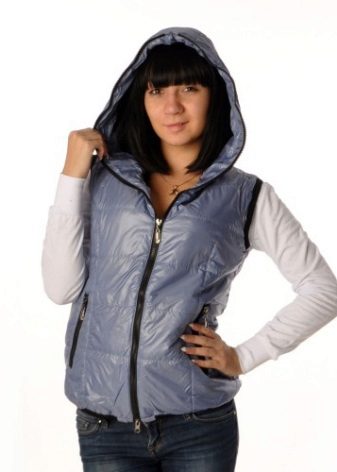 Without sleeves. These hooded sweaters are bought for both the summer and the off-season, putting on with turtlenecks and golf. Such sleeveless jackets are in demand among athletes and may be called sweatshirts, overalls or vests.