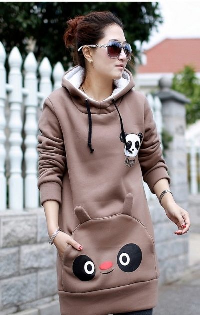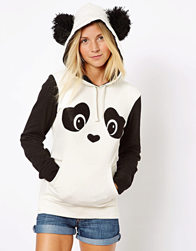 Among these jackets are especially popular sweaters with a panda on the hood. In addition to the “panda sweatshirts”, items with cat ears, bears and foxes are in great demand.