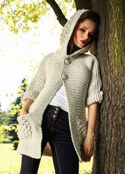 - Knitted sweater with a hood, made by hand, is a spectacular and original clothing.