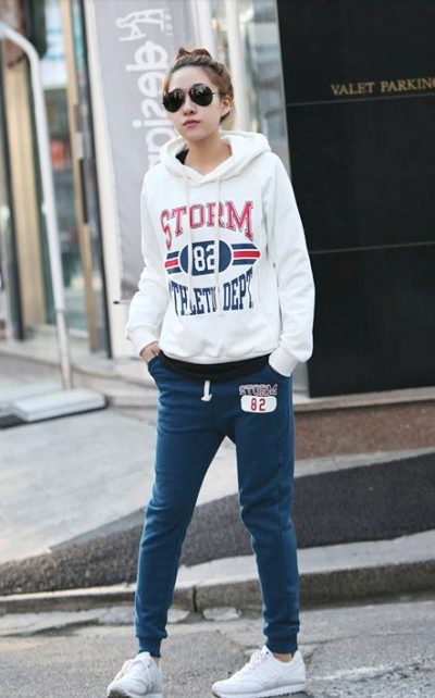 - Sweatpants and sneakers. Having added them with a jacket with a hood, you can go for a run.