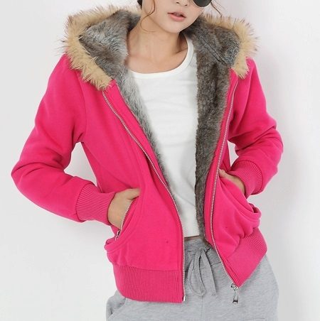 With a fur hood. Such sweaters are popular for the winter season and late autumn. Thanks to the fur trim they keep warm well and look very attractive. Fur on the hood is natural or artificial.