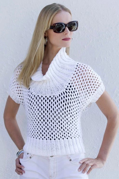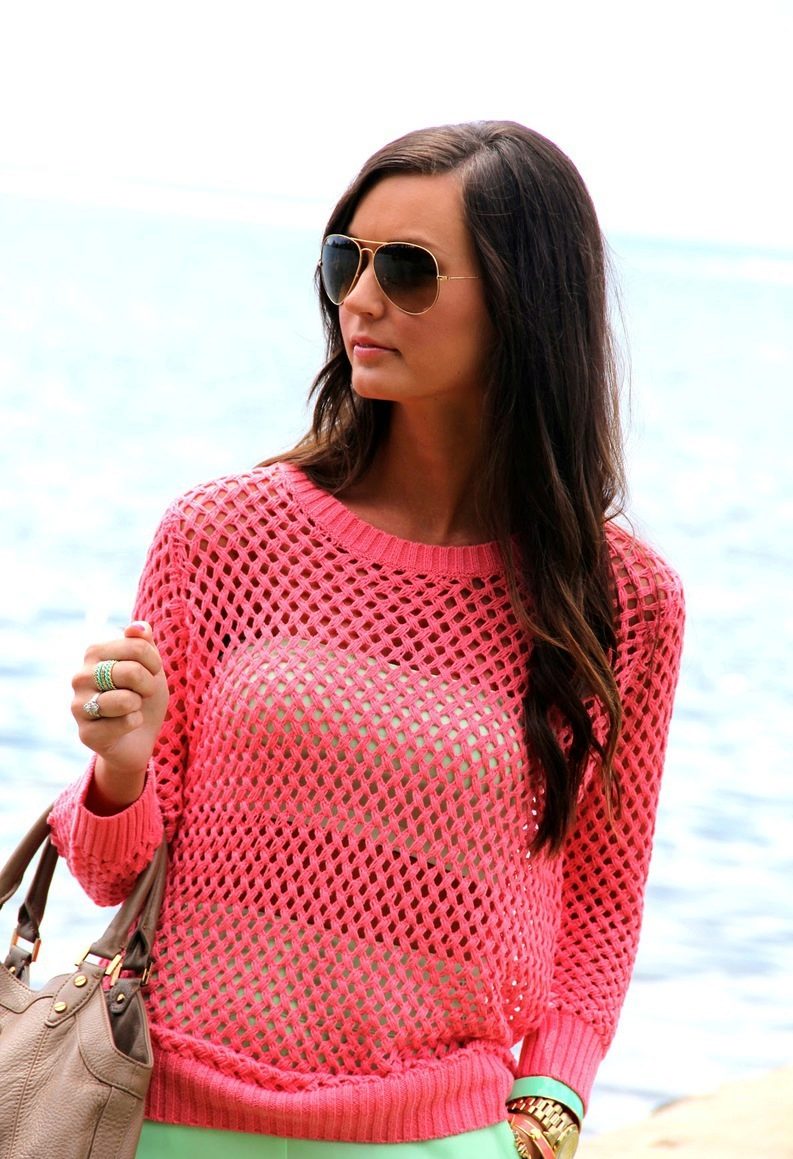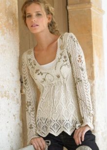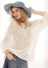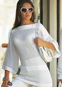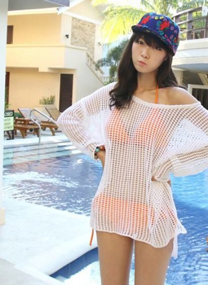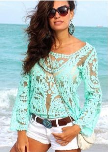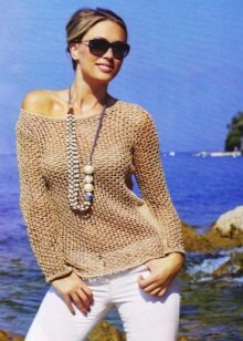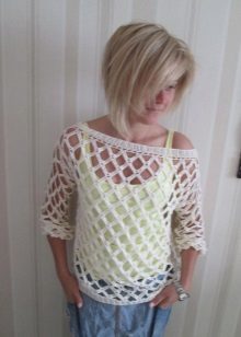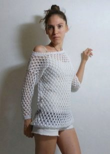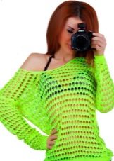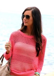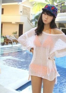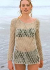 - Beach lovers can be advised loose, long sweater-mesh with large cells that can be worn over the swimsuit. These are very comfortable clothes in which you will be comfortable walking along the beach or sitting in a beach cafe.