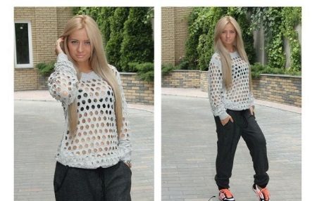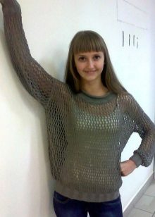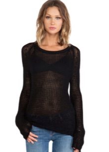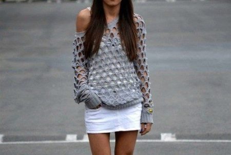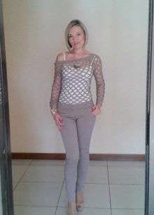 Therefore, if you are embarrassed by the protruding tummy, plump arms and shoulders, it is better to refuse such a thing. In addition, you need to take into account the condition of your skin - if it is flabby, with wrinkles or stretch marks, you should wear a net sweater only over a long T-shirt or top.